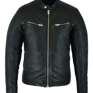 Men’s Black Leather Biker Jacket – Classic Motorcycle Style