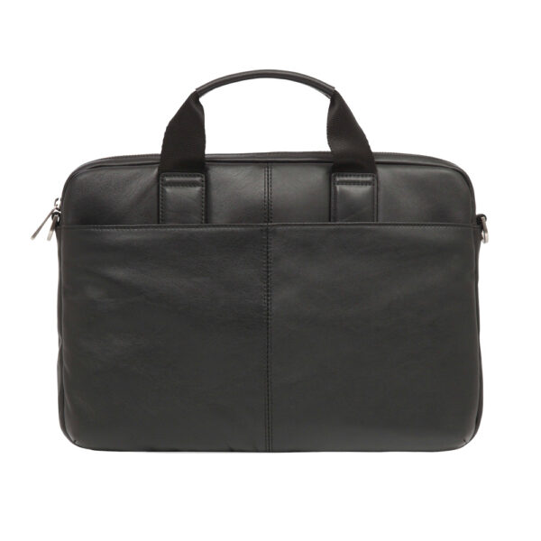 An elegant black leather laptop bag designed for professionals who want style and functionality for office and travel.